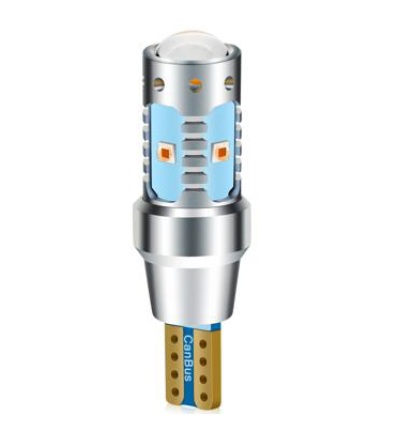 Super CREE LED “T15, WY16W ” – aukščiausios galios 30w cree led – CanBus posūkių žibintų lemputė su lešiu priekyje. Rekomenduojame į Amerikietiškų (JAV) automobilių posūkių žibintus. Posūkiai švies geltonai, nors žibintų stiklai raudoni.